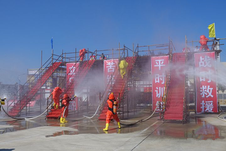 本屆競賽個人項目設(shè)置了理論考試、綜合體能、帶壓快速堵漏、單兵搶險救援等四大科目,集體項目為化工裝備初期火災(zāi)處置,競賽科目設(shè)置立足救援任務(wù),理論與體能相結(jié)合,技能與演練相結(jié)合。個人技能體現(xiàn)“實戰(zhàn)”,個人技能科目要求先佩戴呼吸器后競賽,模擬在實戰(zhàn)情況下完成競賽科目。綜合演練體現(xiàn)“實景”,最大限度還原事故現(xiàn)場。