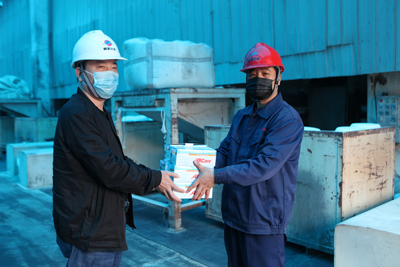 集團工會韓紅喜主席為我公司一線職工發(fā)放口罩